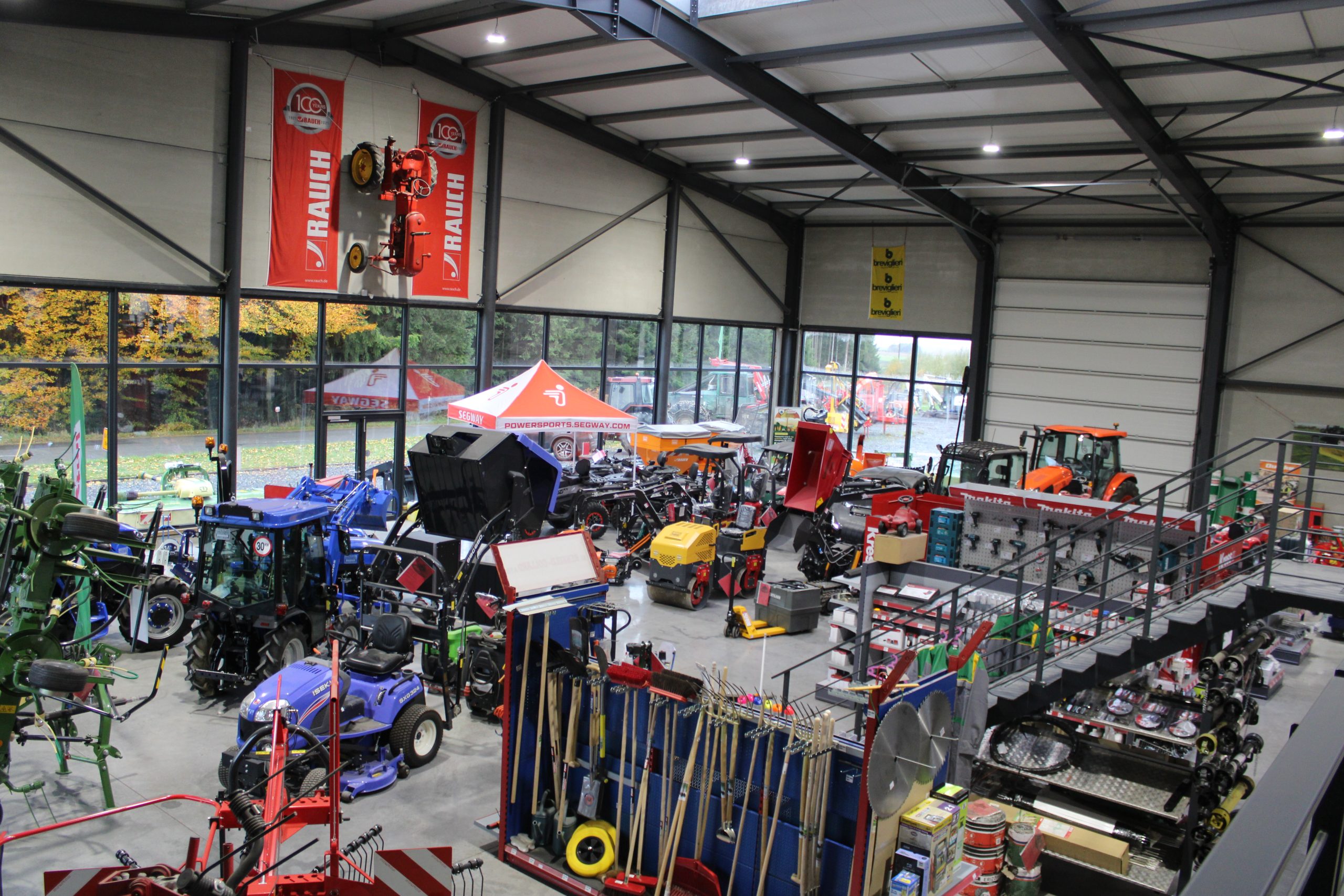 Gauthier begint zijn verhaal: ‘We zijn in 2023 naar hier verhuisd, de oude gebouwen in Mogimont waren veel te klein geworden. Bij het ontwerpen van deze nieuwe gebouwen heb ik bijzondere aandacht besteed aan het werkgemak voor mijn werknemers en aan de bouw van een grote showroom om de merken die ik verkoop te presenteren en mijn voorraad machines tentoon te stellen. Ik investeer veel in voorraad en ik moet zeggen dat het de moeite loont. Zien doet nu eenmaal kopen. Daarnaast kan de klant, wanneer een machine op voorraad is, er vrijwel direct mee naar buiten, wat ook een troef is voor de verkoop.’