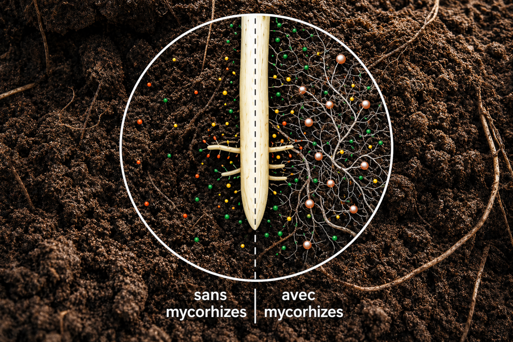 Bien qu’un taux élevé de phosphore ne nuise pas directement aux mycorhizes, il peut ralentir la formation de la symbiose. Lorsque le phosphore est déjà suffisamment présent, la plante émet moins de signaux pour activer les champignons. Certains bénéfices, comme l’amélioration de l’absorption d’eau, peuvent alors être réduits.